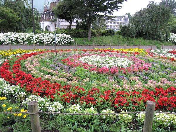 公園内の『花の丘』には人の手が入った肥料たっぷりの花壇。